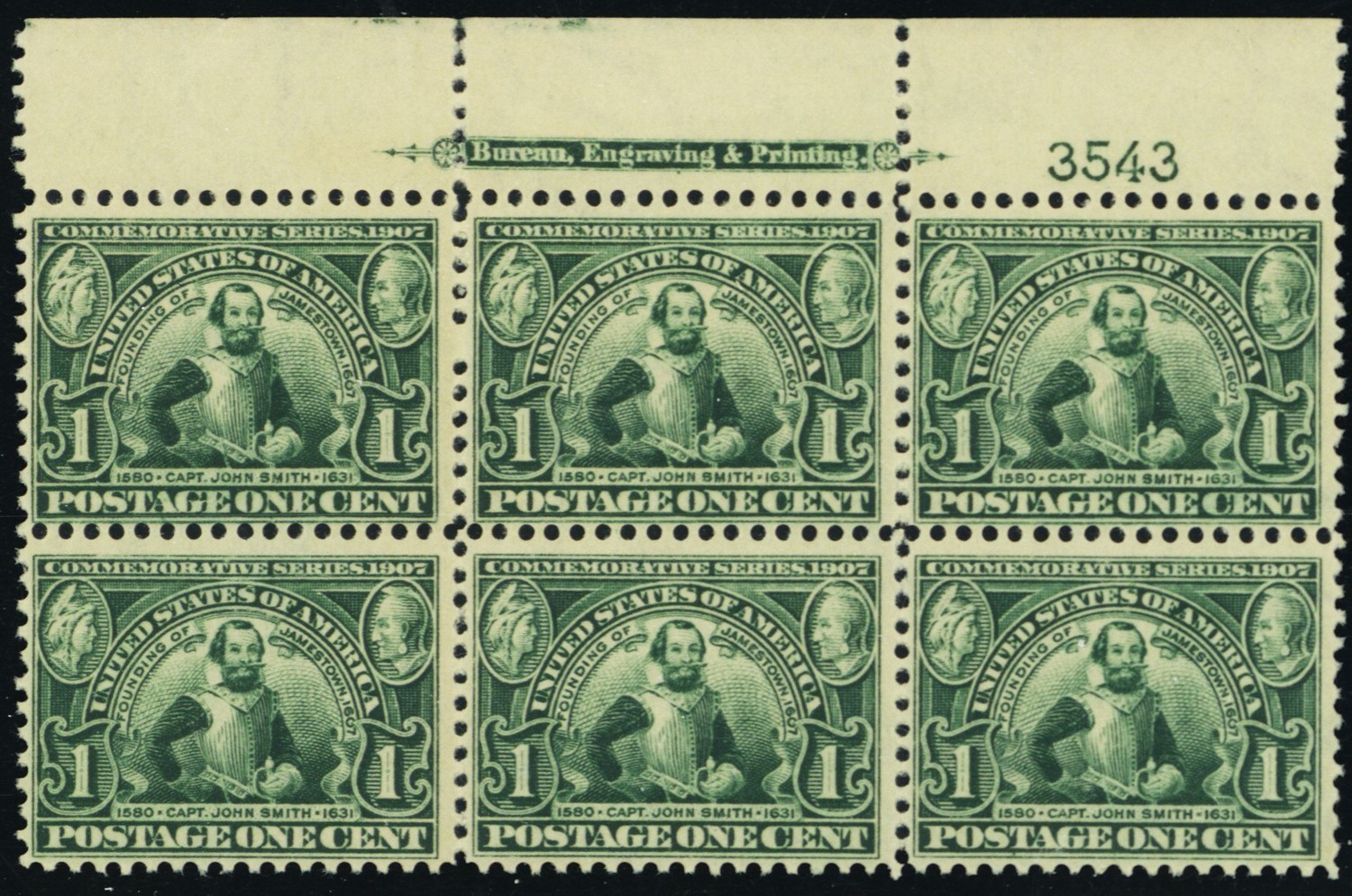 328, Mint FVF NH 1¢ Top Plate Block of Six SCV $850 - Stuart Katz