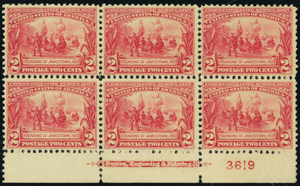 329, Mint FVF NH 2¢ Plate Block of Six SCV $900 - Stuart Katz