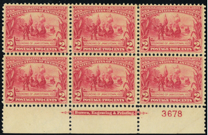 329, Mint VF/XF LH 2¢ - Plate Block of Six - Stuart Katz