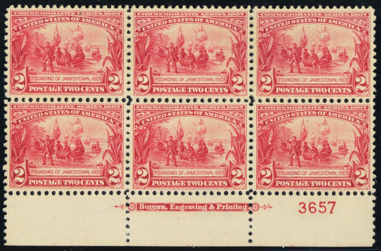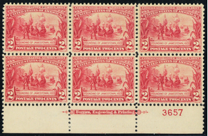 329, Mint XF VLH 2¢ - Plate Block of Six - Stuart Katz