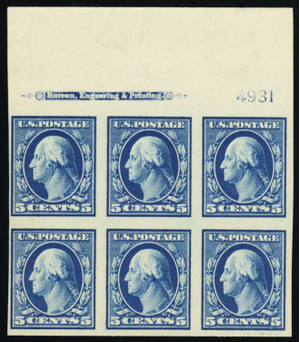 347, Mint NH 5¢ TOP Plate Block of Six SCV $475 * Stuart Katz