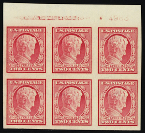 368, Mint VF H 2¢ Top Plate Block of Six Stamps - Stuart Katz