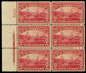372, Mint XF LH 2¢ Top Plate Block of Six Stamps * Stuart Katz