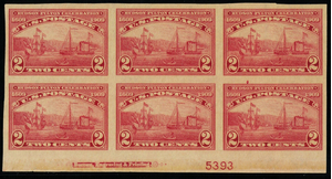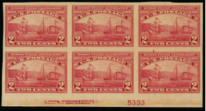 373, Mint VF NH 2¢ Bottom Plate Block of Six Stamps * Stuart Katz