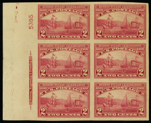 373, Mint XF NH 2¢ Left Side Plate Block of Six Stamps * Stuart Katz