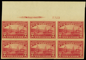 373, Mint XF NH 2¢ Top Plate Block of Six Stamps ** Stuart Katz