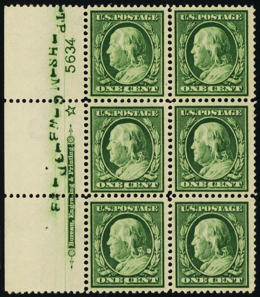 374, Mint VF NH 1¢ Plate Block of Six Stamps - Stuart Katz