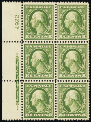 380, Mint XF NH/LH 8¢ Plate Block of Six SCV $1300 * Stuart Katz