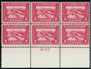 398, Mint FVF NH 2¢ Plate Block of Six - Solid Perfs - Stuart Katz