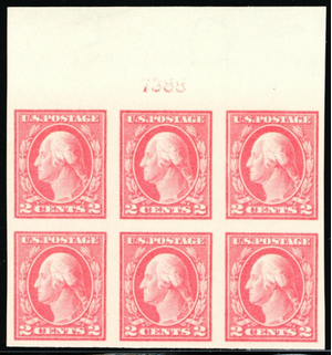 409, Mint NH XF 2¢ Top Plate Block of Six - Stuart Katz