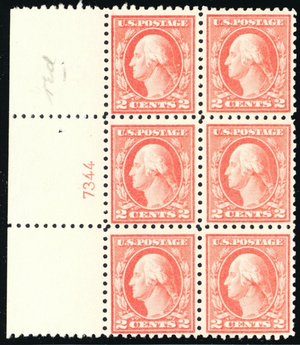 425, Mint NH VF 2¢ Plate Block of Six Cat $75.00 - Stuart Katz