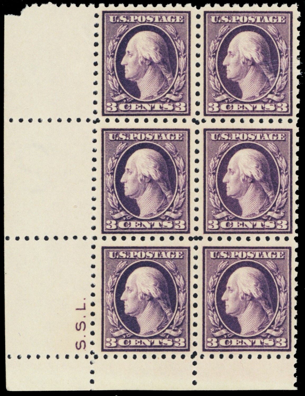 426, Mint 3¢ VF NH Block of Six With Initials CV $210.00+ - Stuart Katz