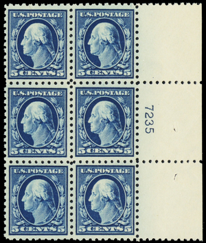 428, Mint NH VF 5¢ Right Side Plate Block of Six * Stuart Katz