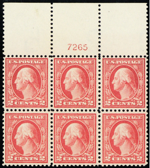 461, VF (Glazed gum) 2¢ Scarce Plate Block of Six Stamps CV $1500 - Stuart Katz