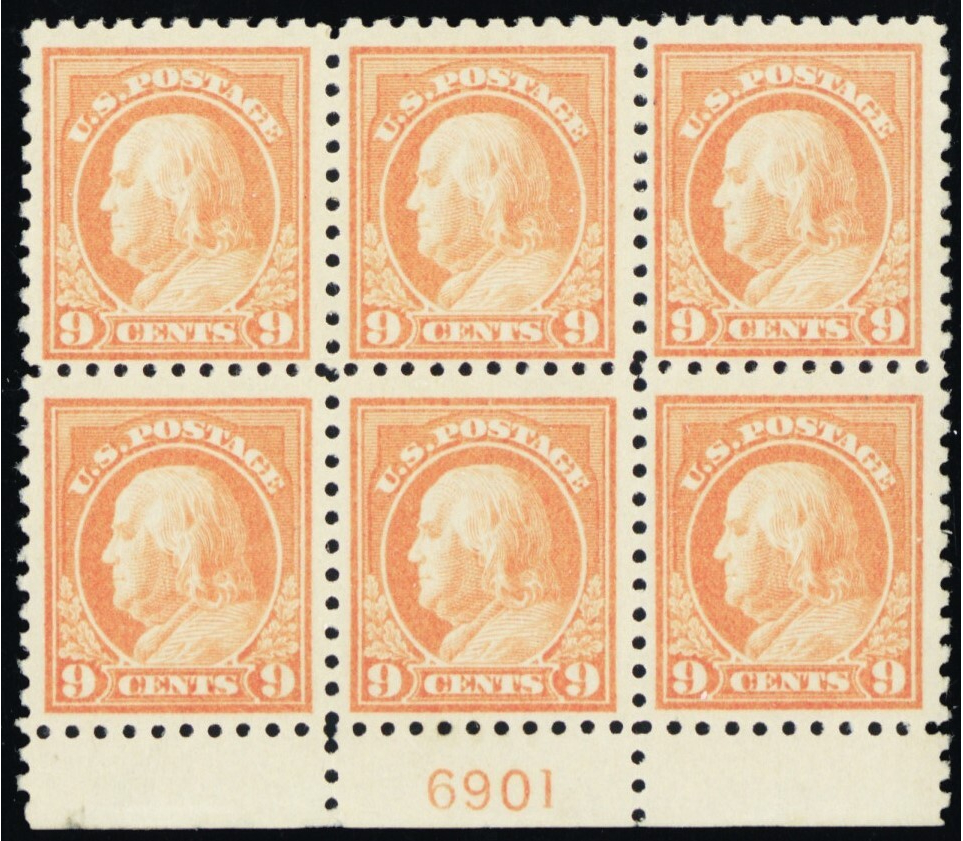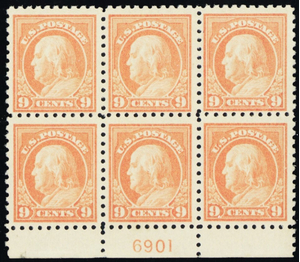 471, Mint NH 9¢ F/VF RARE Plate Block of Six Stamps CV $1375 - Stuart Katz