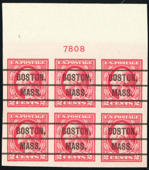 482, 2¢ OG NH TOP Plate Block - BOSTON MA Precancels ** Stuart Katz