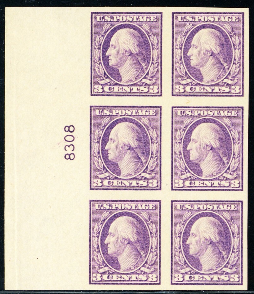 484, Mint NH Superb 3¢ Plate Block of Six Stamps - Stuart Katz