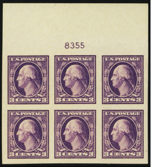484, Mint NH Superb 3¢ Top Plate Block of Six Stamps - Stuart Katz