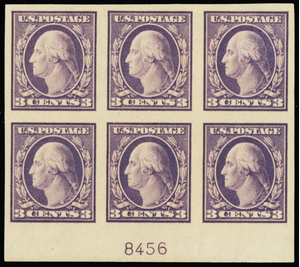 484, Mint NH XF 3¢ Plate Block of Six Stamps - Stuart Katz