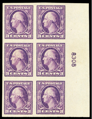 484, Mint VF/XF LH 3¢ Plate Block of Six CV $95.00 *-* Stuart Katz
