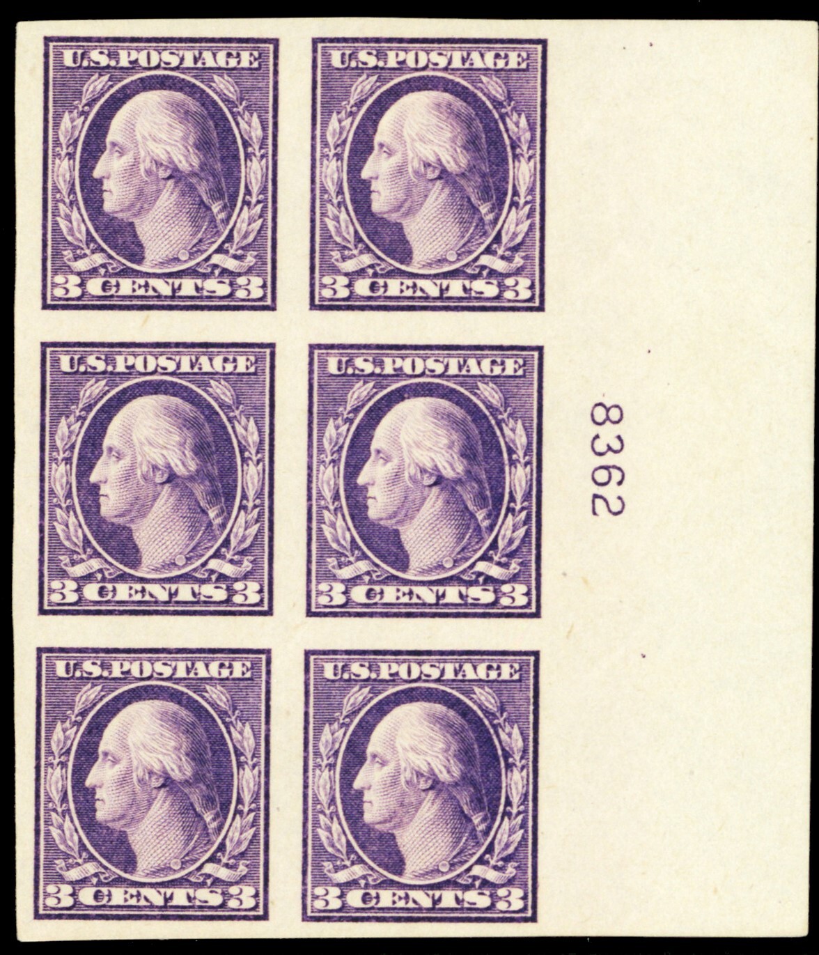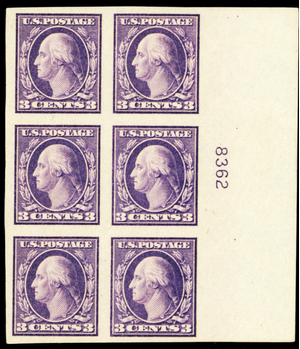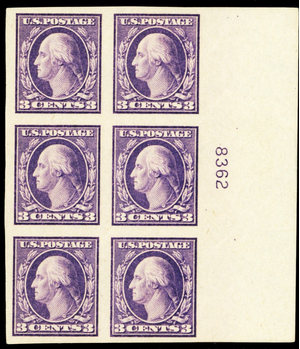 484, Mint VF/XF LH 3¢ Plate Block of Six CV $95.00 ** Stuart Katz
