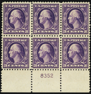 502, Mint NH VF 3¢ Plate Block of Six Stamps - Stuart Katz