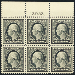 507, Mint VF/XF NH 7¢ - TOP Plate Block of Six - Stuart Katz