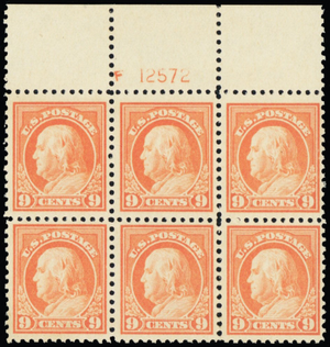 509, Mint NH VF 9¢ WIDE TOP Plate Block of Six Stamps - Stuart Katz