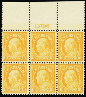 510, Mint F-VF NH Top Plate Block of Six Stamps * Stuart Katz