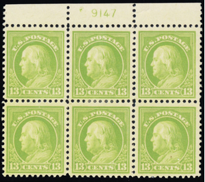 513, Mint FVF H 13¢ Top Plate Block SCV $140 - Stuart Katz