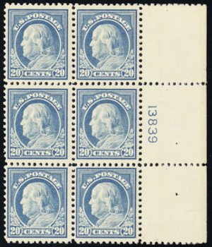 515, Mint VF LH/NH 20¢ Plate Block of Six SCV $600 * Stuart Katz