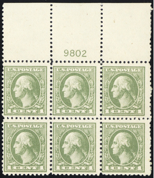 525, Mint NH 1¢ Wide Top Plate Block - Stuart Katz