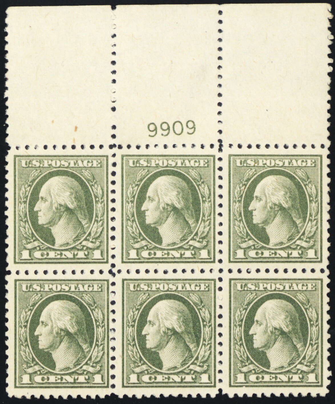 525, Mint VF NH 1¢ Wide Top Plate Block - Stuart Katz