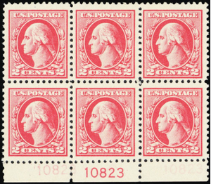 526, Mint 2¢ VF/XF NH (Ghost) Plate Block of Six Stamps Cat $450.00 Stuart Katz