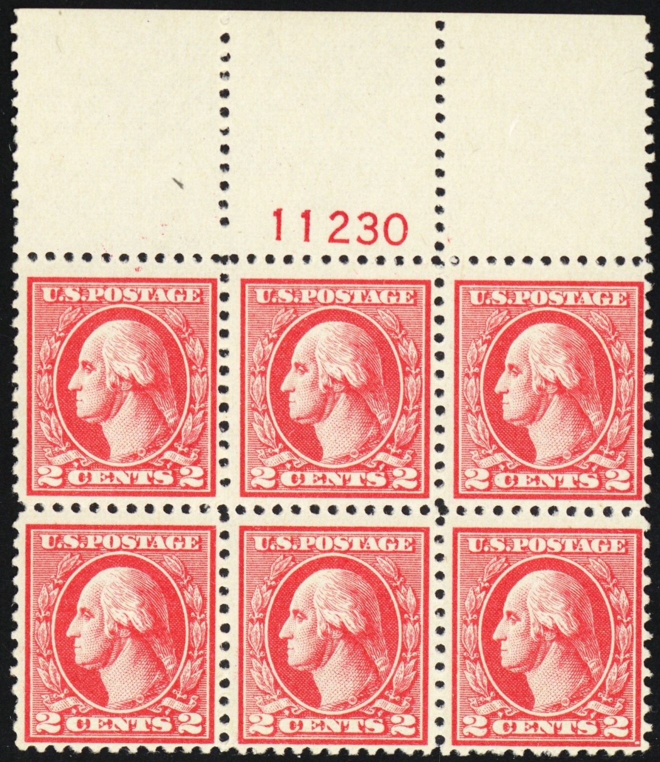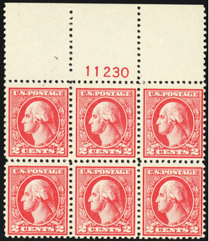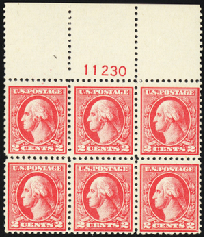 527, Mint FVF NH 2¢ WIDE Top Plate Block of Six * Stuart Katz