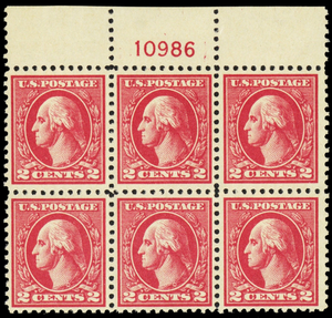 527, Mint NH VF 2¢ Top Plate Block of Six - Stuart Katz
