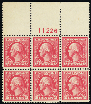 527, Mint Sm HR in Salvage Only 2¢ Top Plate Block SCV $185+ - Stuart Katz