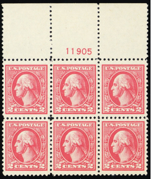 527, Mint XF NH 2¢ Wide Top Plate Block of Six - BEAUTY * Stuart Katz