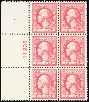 527, VF-XF NH 2¢ Left Side Plate Block of Six Stamps - Stuart Katz