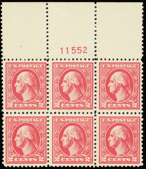 528, Mint NH F-VF 2¢ WIDE TOP Plate Block of Six Stamps - Stuart Katz