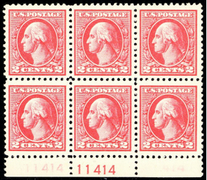 528, Mint NH VF 2¢ GHOST PL# Plate Block of Six Stamps - Stuart Katz