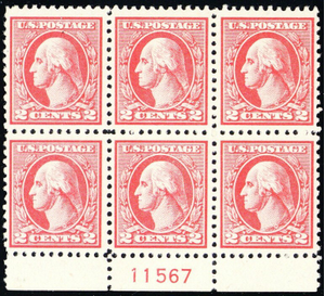 528, Mint NH VF 2¢ Plate Block of Six Stamps - Stuart Katz