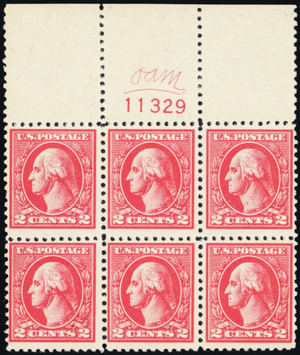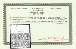 528, Mint VF NH Monogram Top Plate Block of Six Stamps Cat $300.00 - Stuart Katz