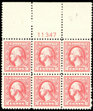 528, Mint VLH VF 2¢ Top Plate Block of Six Stamps - Stuart Katz