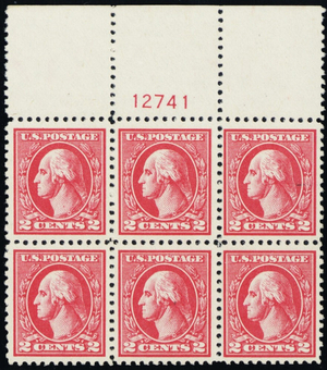 528B, Mint VF/XF 2¢ Wide Top Plate Block of Six - Stuart Katz