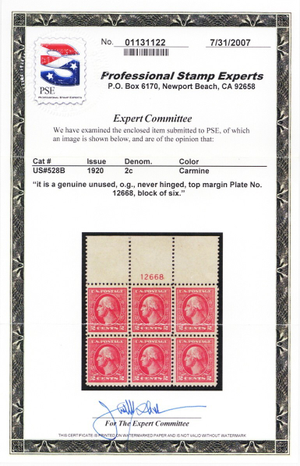 Due to the high cost of obtaining certificates we will only refund the cost of the stamp and not the cost of the certificate for stamps that sell for less than $250 that come back with a negative certificate. Stamps that sell for above $250 will receive a full refund for both the price of the stamp and cost of the certificate if it should come back not as described. For U.S. stamps only certificates from either APS, PSE or from the Philatelic Foundation are accepted, however "graded" certificates or "encased" items are not accepted.