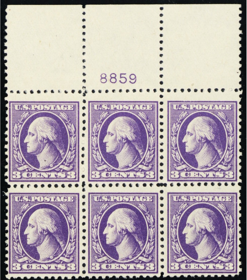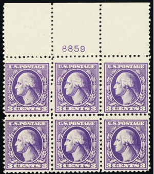 530, Mint NH 3¢ Top Plate Block of Six Stamps - Stuart Katz