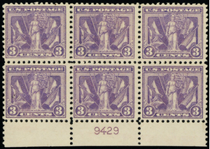 537, Mint F-VF LH 3¢ Plate Block of Six Stamps CV $260 * Stuart Katz