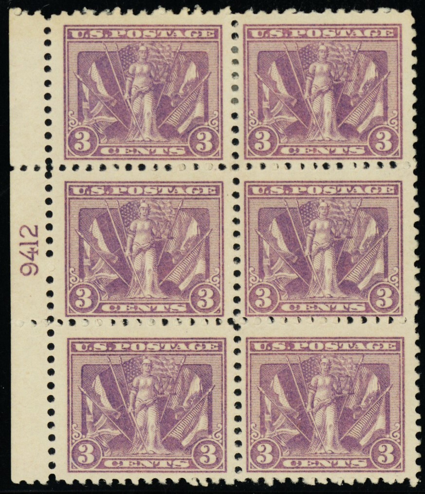 537, Mint FVF HR Top Two - 3¢ Plate Block of Six Stamps CV $260 * Stuart Katz