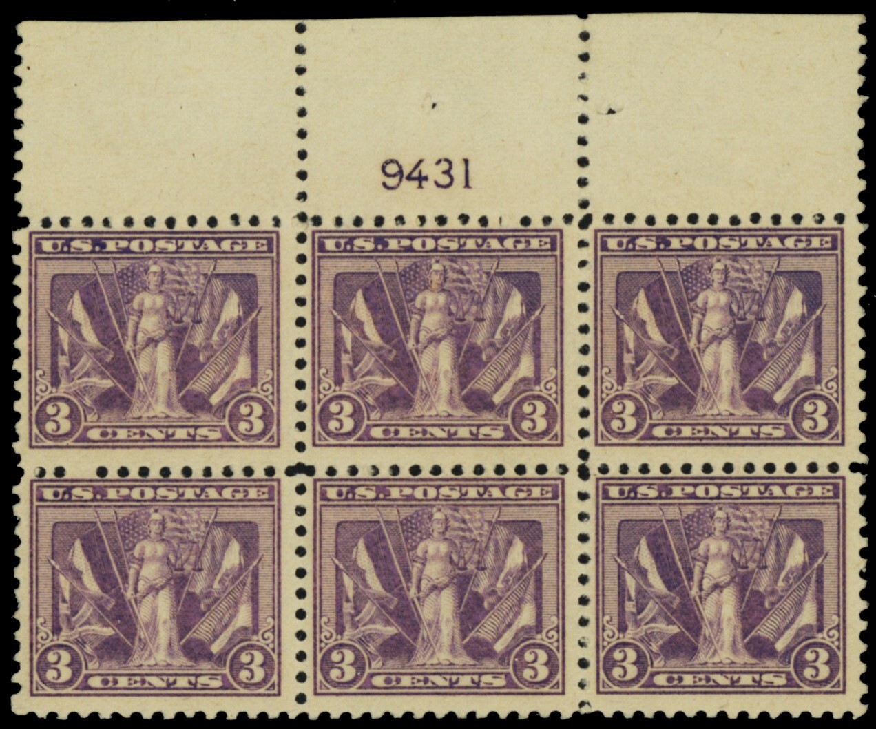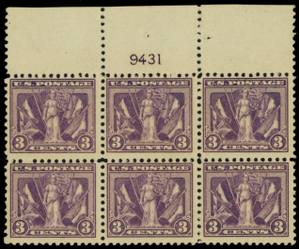 537, Mint LH (Stamps NH) 3¢ Top Plate Block of Six Stamps - Stuart Katz